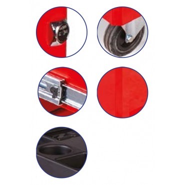 - 2 ruedas giratorias con freno, 2 ruedas fijas, ø 100mm.